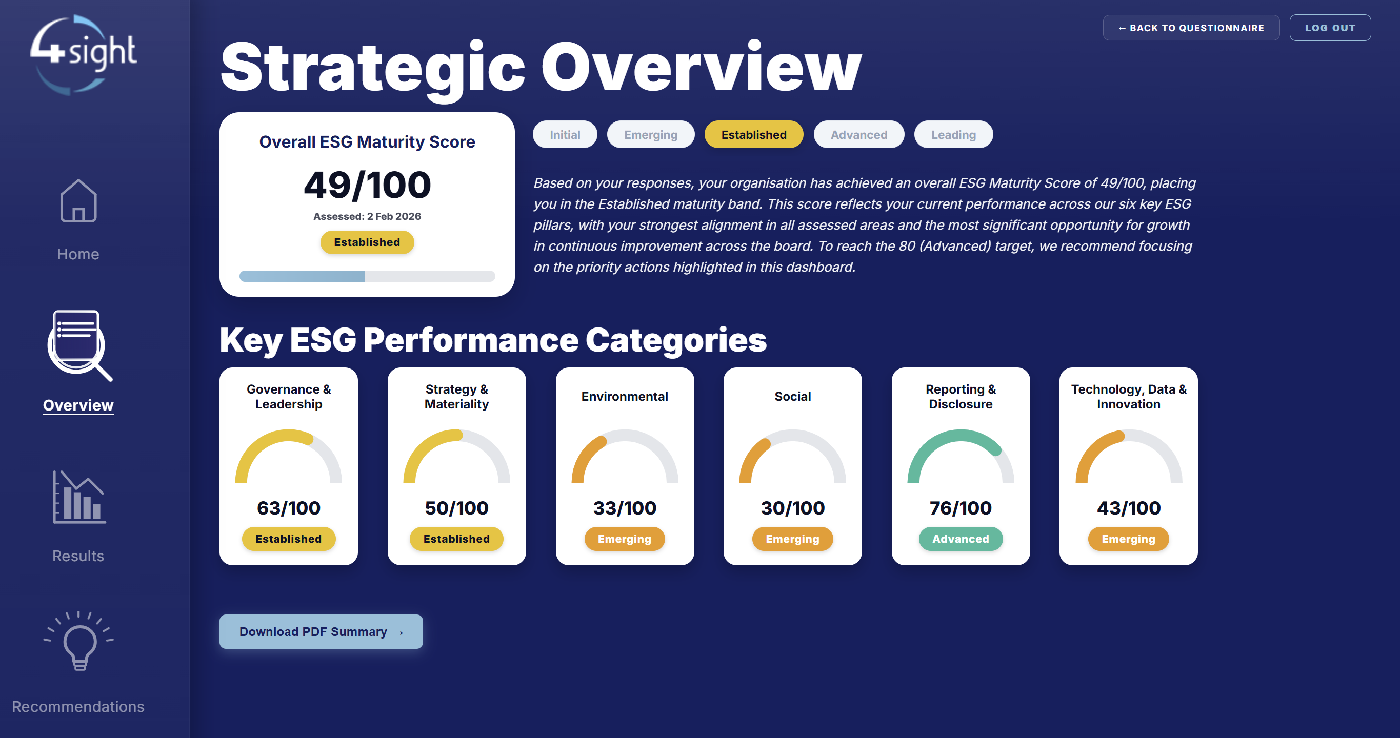 That’s why 4Sight built more than just an assessment tool – we built a data-driven ESG solution so you don’t fall behind.